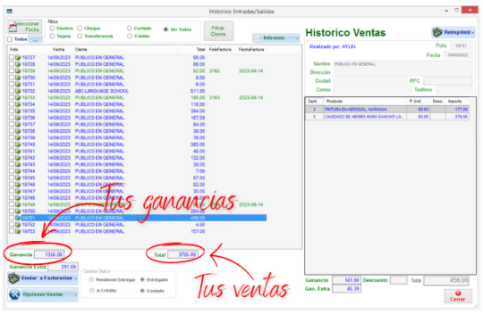 · Gestión de existencias, faltantes y detalles de cada producto vendido