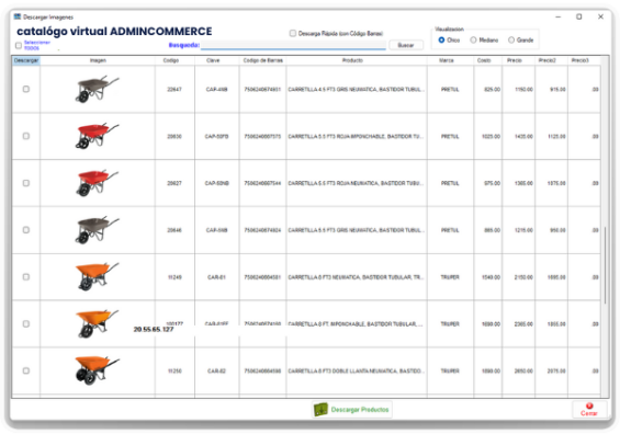 Esta función está disponible en el módulo de productos y te permitirá buscar y descargar tus productos con imagen directamente a tu base de datos.