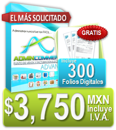 * 1 Licencia de uso ilimitado para 1 Equipo * 300 Folios Digitales * Asistencia y Tramite de Sello Digital GRATIS * Asistencia Tecnica GRATIS * Soporte Remoto AdminCommerce